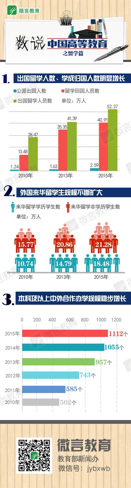 近期,“微言教育”将连续刊发图解,为大家展现高教改革发展变化。今天推出第四期“数说中国高等教育之留学篇”。