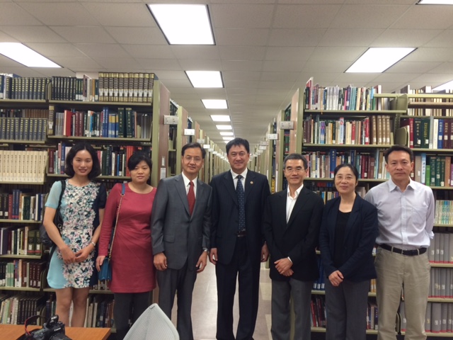 9月18日广东外语外贸大学党委书记隋广军教授一行四人在袁东参赞陪同下访问了UCLA中国研究中心和东亚图书馆。双方就相关感兴趣的研究领域、研究机构建设、现代化图书信息建设、教育教学等方面问题进行了交流和探讨。