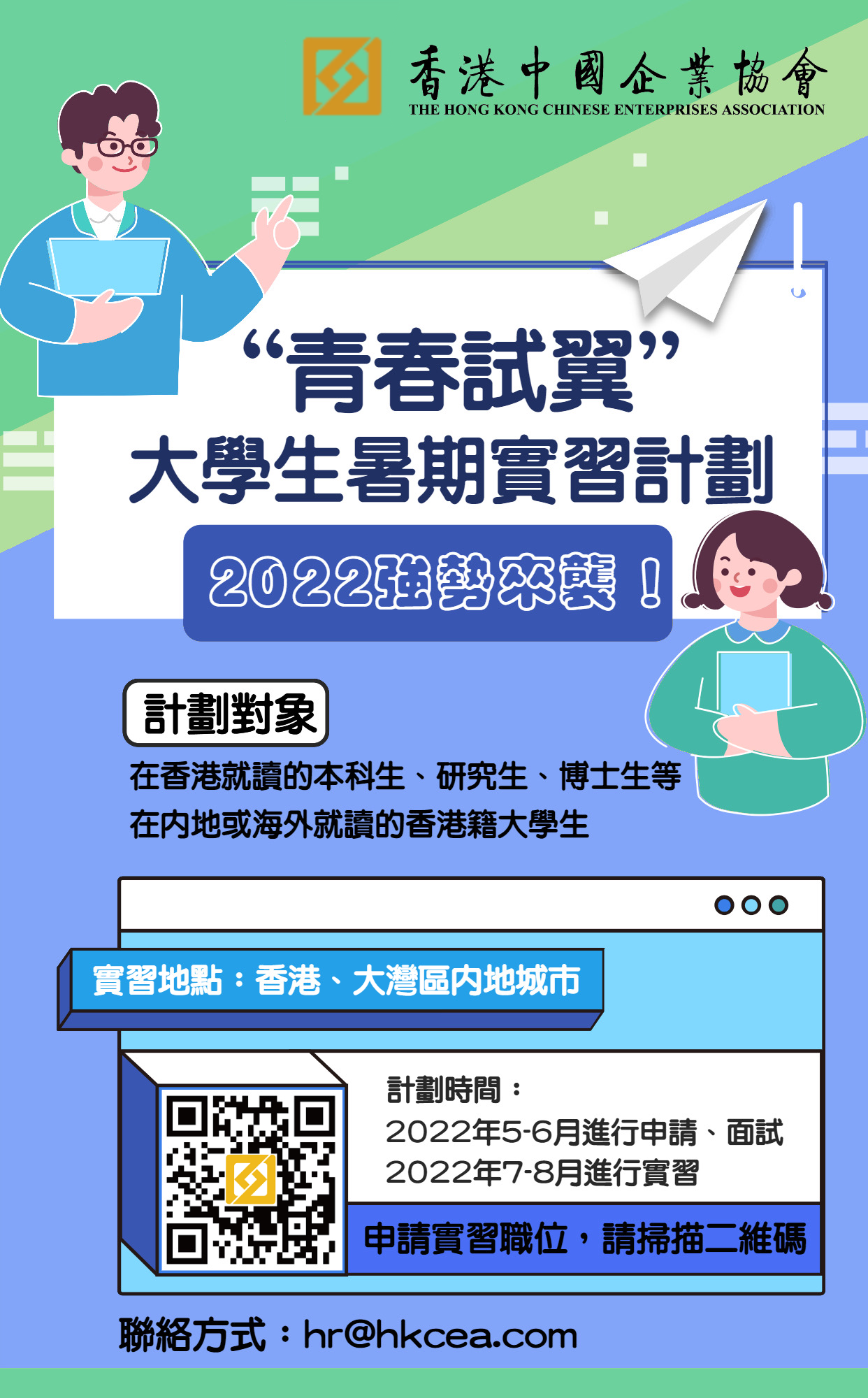香港中國企業協會「2022青春試翼大學生暑期實習計劃」正式接受申請!