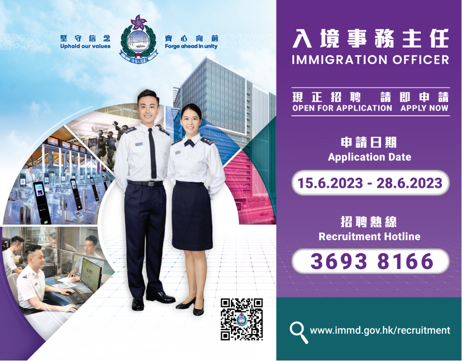 詳情請瀏覽以下網址:https://www.immd.gov.hk/hkt/recruitment/index.html